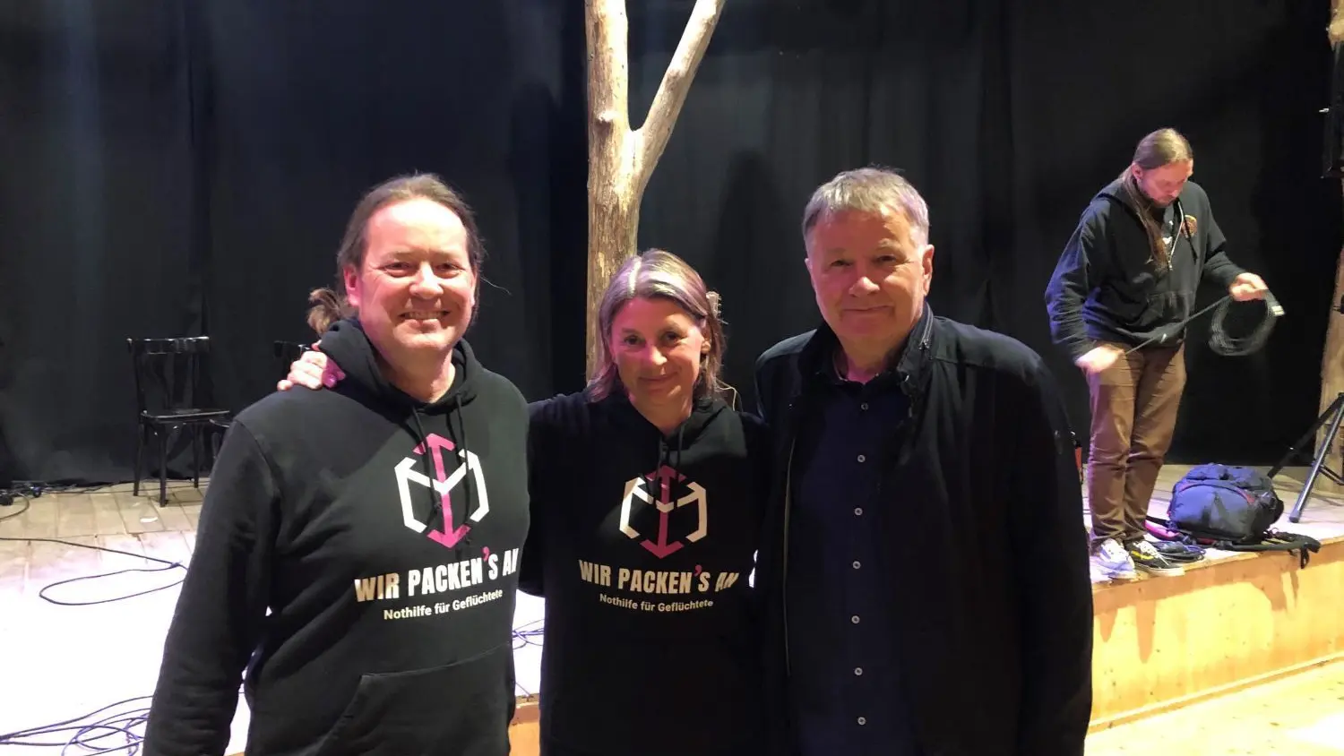 Nach dem Konzert: Axel Grafmanns und Miriam Tödter von "Wir packen's an" und Thomas Rühmann im Theater am Rand