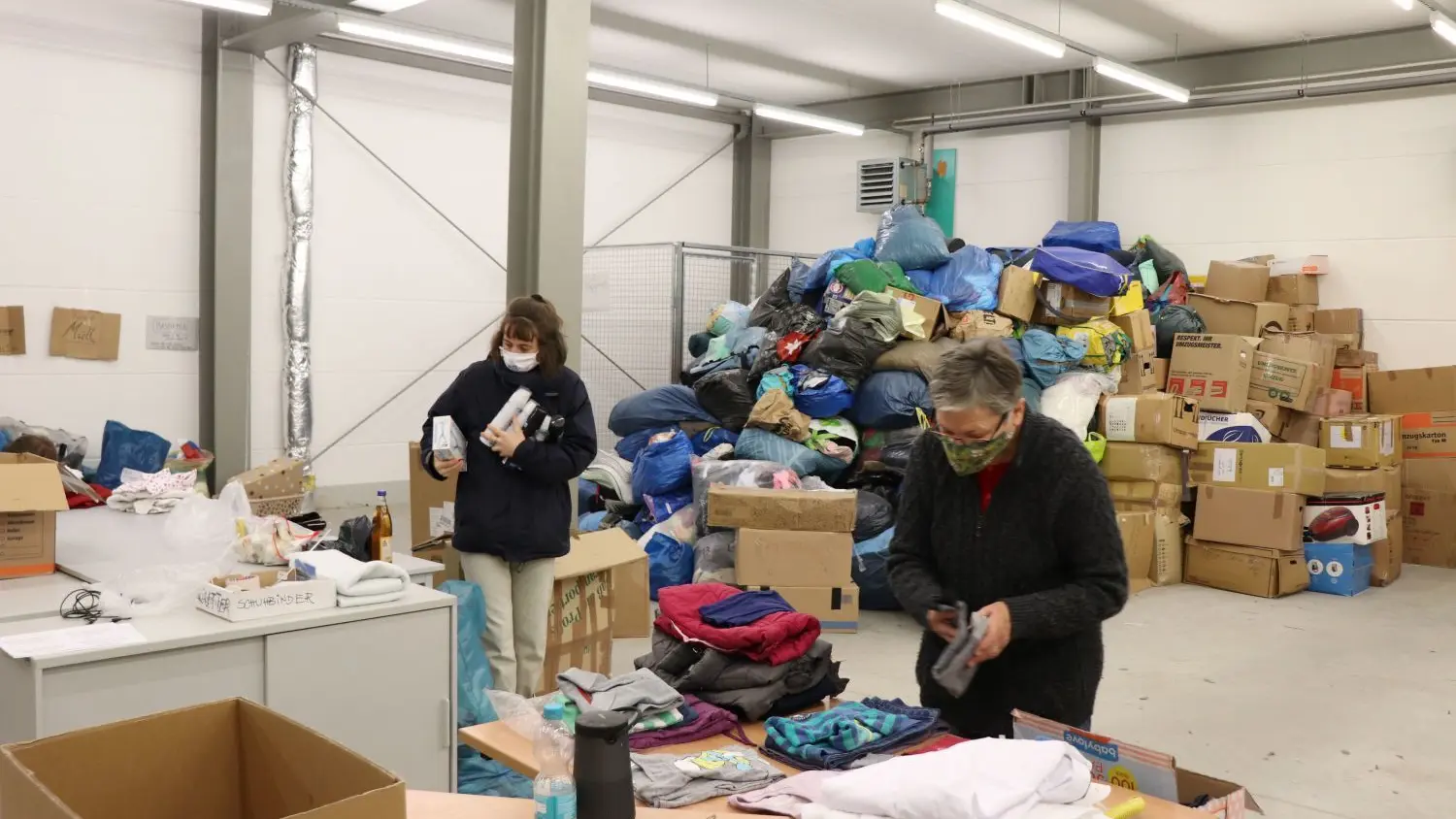 Freiwillige helfen beim Verein "Wir packen´s an" in Bad Freienwalde mit, die Hilfsgüter für Geflüchtete in Griechenland zu sortieren.