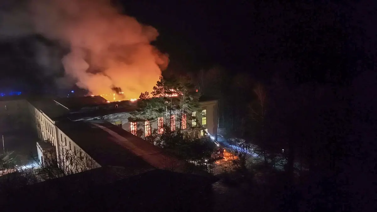 Das Feuer war am Mittwochabend gegen 21 Uhr im Lektionsgebäude der ehemaligen FDJ-Hochschule ausgebrochen, dem größten Gebäude auf der historischen Liegenschaft. Rund 80 Einsatzkräfte waren ausgerückt, um gegen die Flammen zu kämpfen.