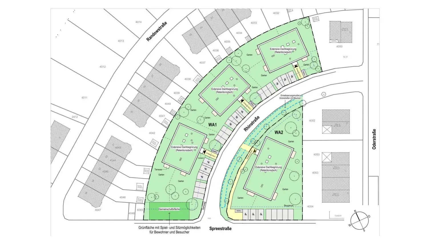 Skizze zum Außenanlagenplan Rhinstraße für die Beschlussvorlage B-Plan Nr. 33 P Entwurf Planstand 08/2020