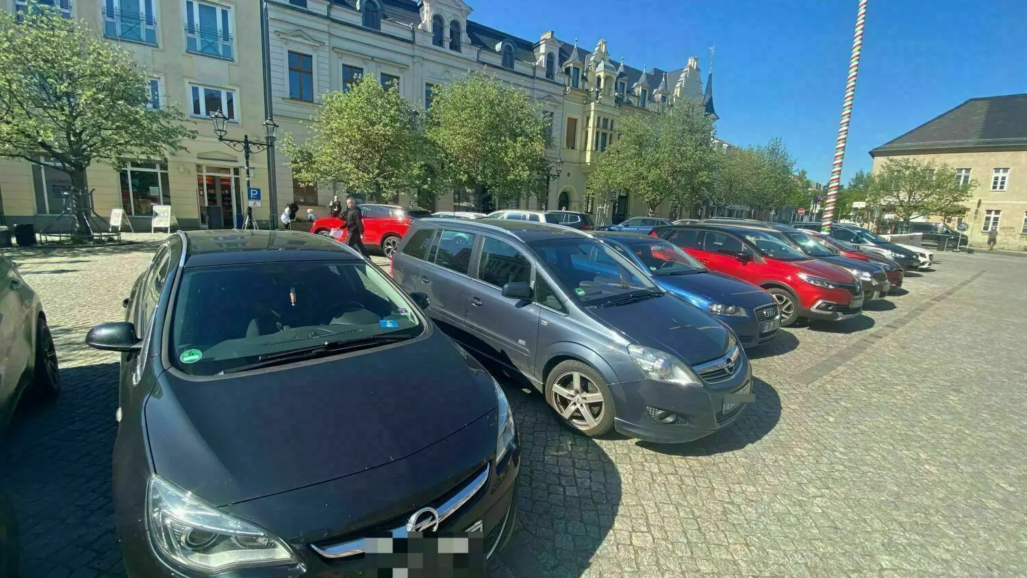 Nicht mehr lange möglich: Das Parken auf dem Marktplatz in Bernau wird mit der Eröffnung des neuen Parkhauses am Ladeburger Dreieck ein Ende haben