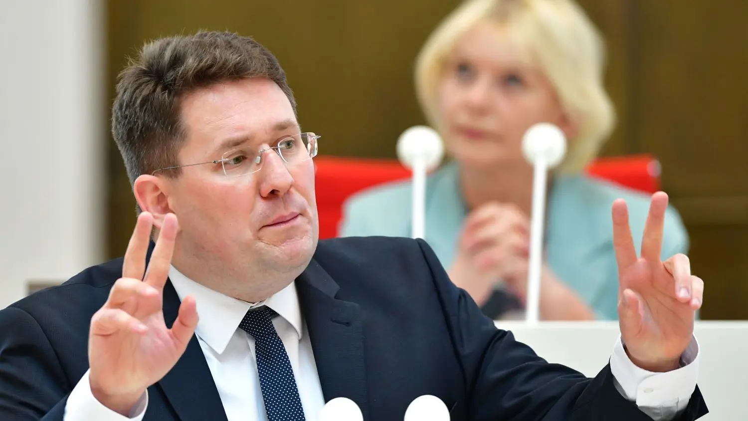 Péter Vida will Vorsitzender der Stadtverordnetenversammlung in Bernau bleiben. Hier hält er eine Rede in seiner Funktion als Fraktionsvorsitzender der BVB/Freie Wähler im brandenburgischen Landtag.