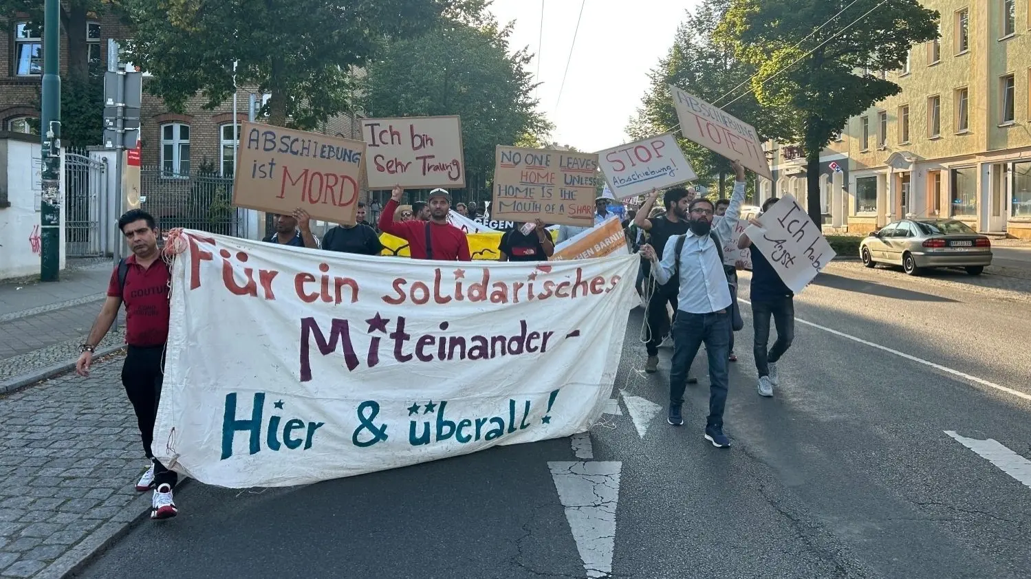 Demonstration gegen Abschiebepraktiken: Rund 80 Menschen demonstrierten am Freitag (8.9.) in Eberswalde. Darunter auch viele Freunde und Bekannte von Mohammad I., der bei einem Polizeieinsatz aus einem Fenster im fünften Stock gestürzt war.