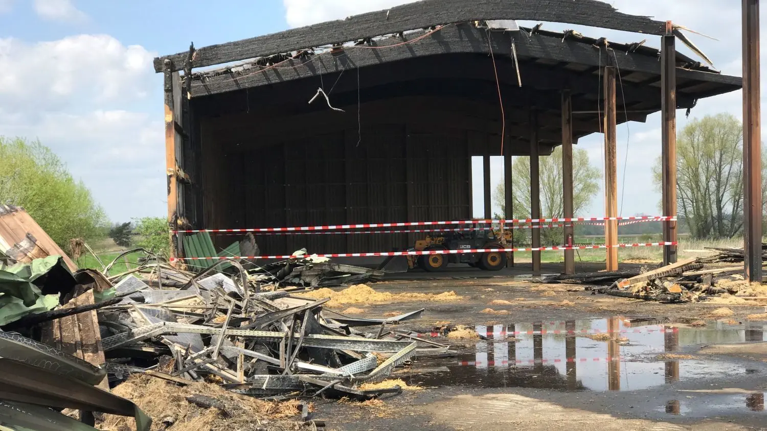 Auf der Jungrinder-Anlage der Bauerngesellschaft Ziltendorfer Niederung ist eine Halle mit gehäckseltem Stroh abgebrannt. Auf ihr befand sich eine Photovoltaikanlage.