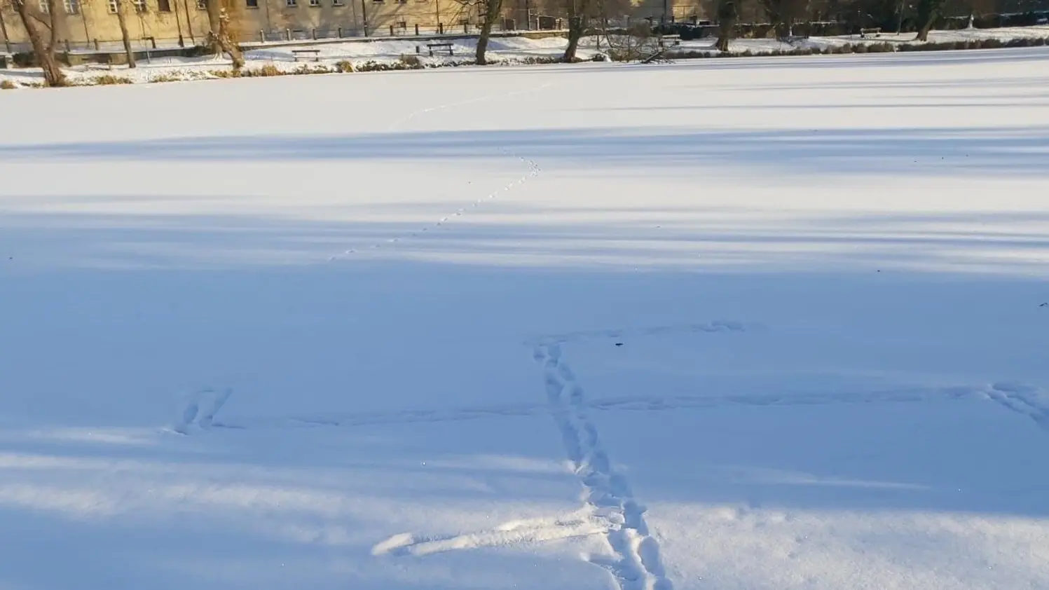 Zur Anzeige gebracht: Das Hakenkreuz, das Unbekannte in den Schnee auf dem Klosterteich in Neuzelle gestapft hatten. Entdeckt wurde es am 19. Januar.