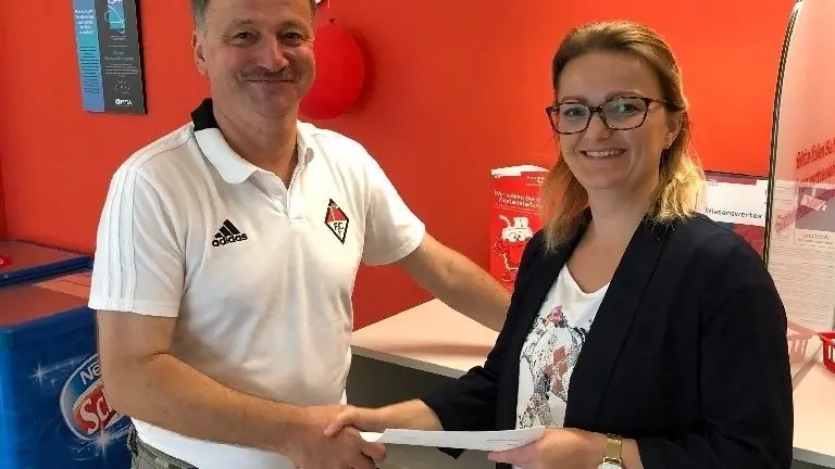 Der 1. FC Frankfurt und das Haema-Blutspendezentrum vereinbaren Kooperation.