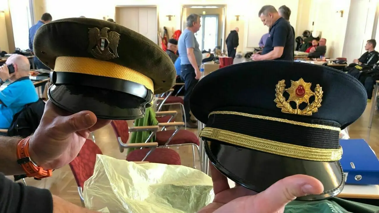 Auffallend war, dass nicht nur neugierige Sammler an den Ständen in Hennigsdorf stöberten, sondern die Händler untereinander auf der Jagd nach fehlenden Objekten der Begierde waren. So wie der Brandenburger Polizist Andreas Schultze. Er kaufte zwei besondere Polizeimützen bei einem polnischen Kollegen: „Das sind eine aktuelle Mütze aus der Türkei und aus Syrien“, zeigte Schultze stolz. Nicht, dass er keine Mützen hätte.