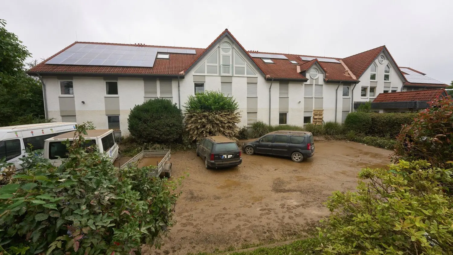 Das Behindertenwohnheim Lebenshilfe-Haus in Sinzig (Rheinland-Pfalz). Starkregen führte auch hier zu extremen Überschwemmungen. Aufgrund des schnell steigenden Wassers konnten zwölf Menschen nicht mehr vor den Fluten der Ahr gerettet werden.