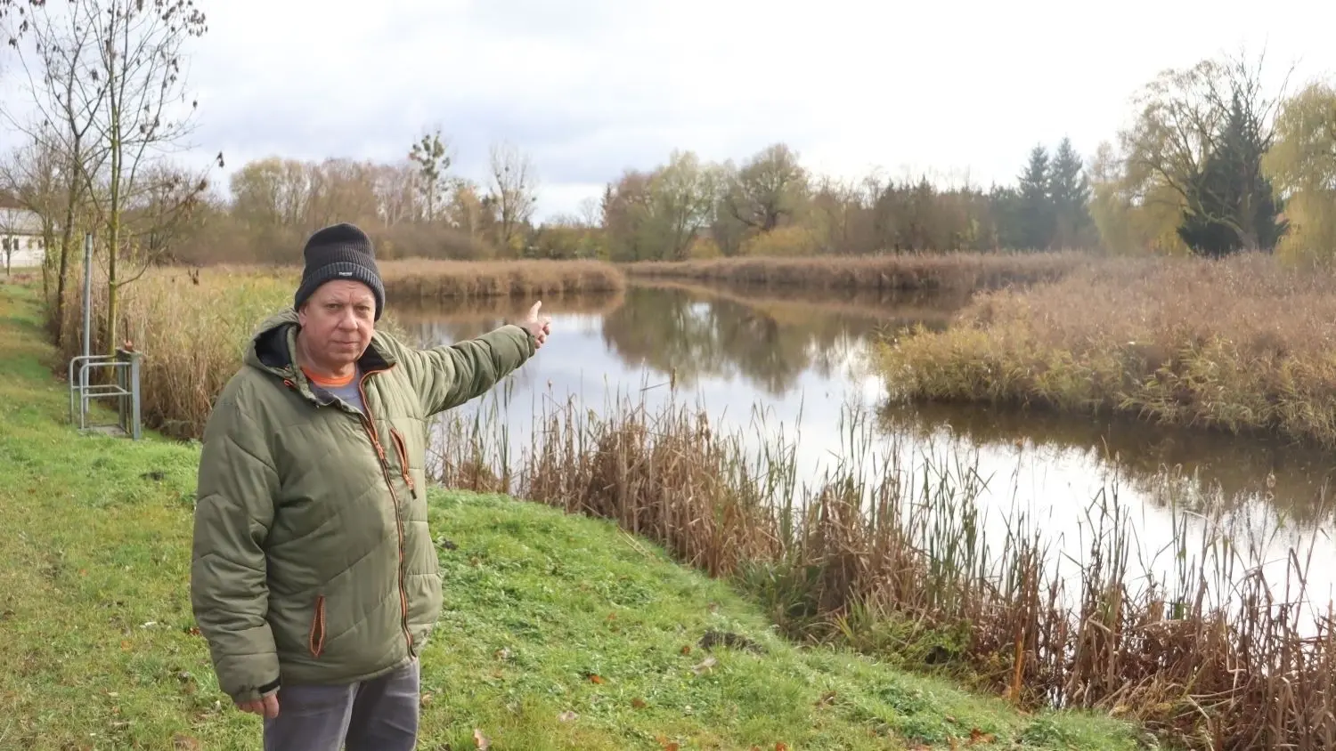 Stefan Neumann, Bürgermeister der Gemeinde Märkische Höhe, am Dorfteich Ringenwalde. Gibt es noch eine letzte Chance, die Giftstoffe dort zu entfernen und das Gewässer zu sanieren?