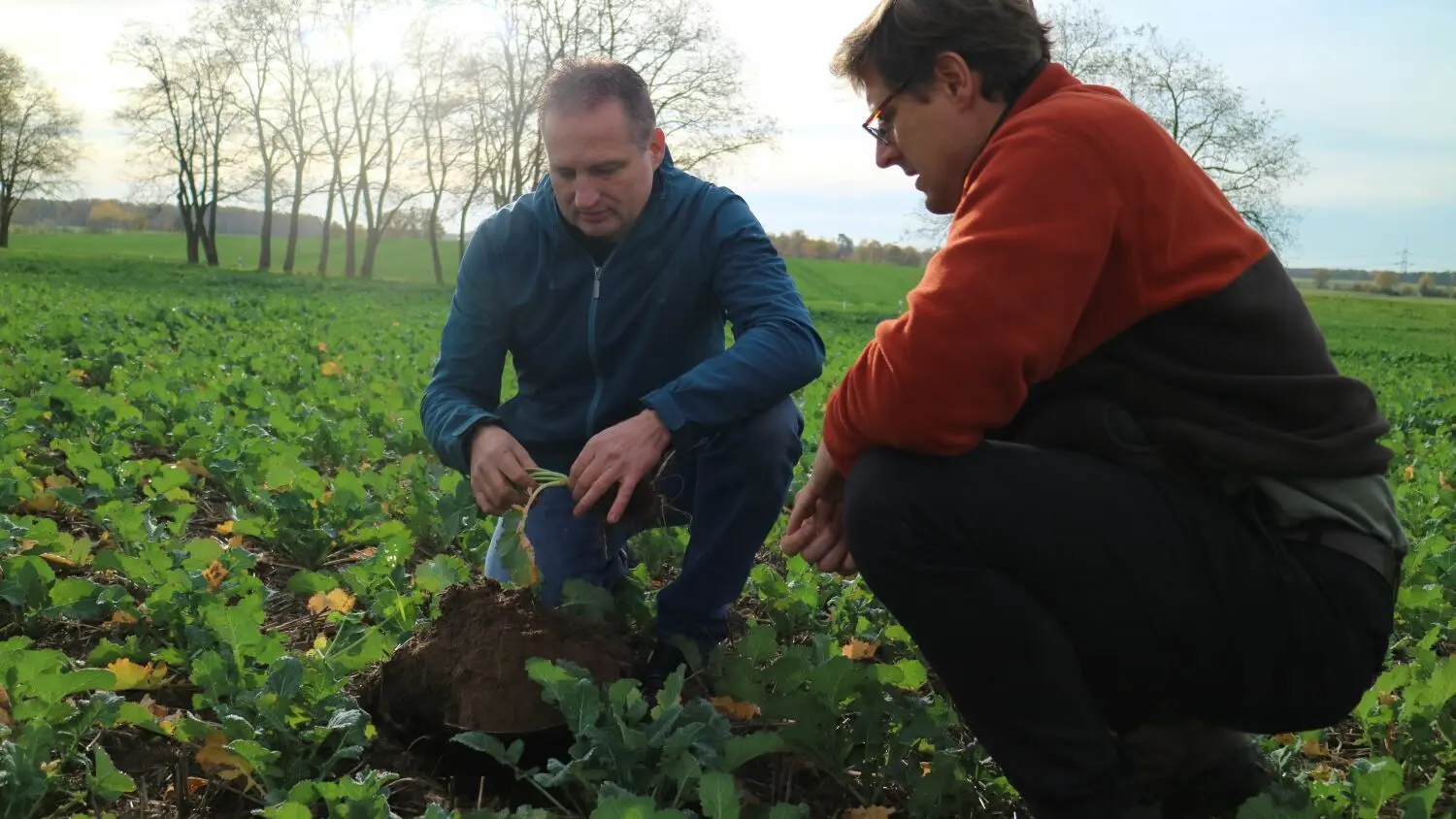 Wie wächst der Raps? Landwirt Andreas Muckwar bearbeitet seine Felder so, dass der Boden viel Wasser speichern kann. Das Verfahren ist in Brandenburg neu, sagt Fabian Blöchl vom Landesbauernverband Brandenburg.