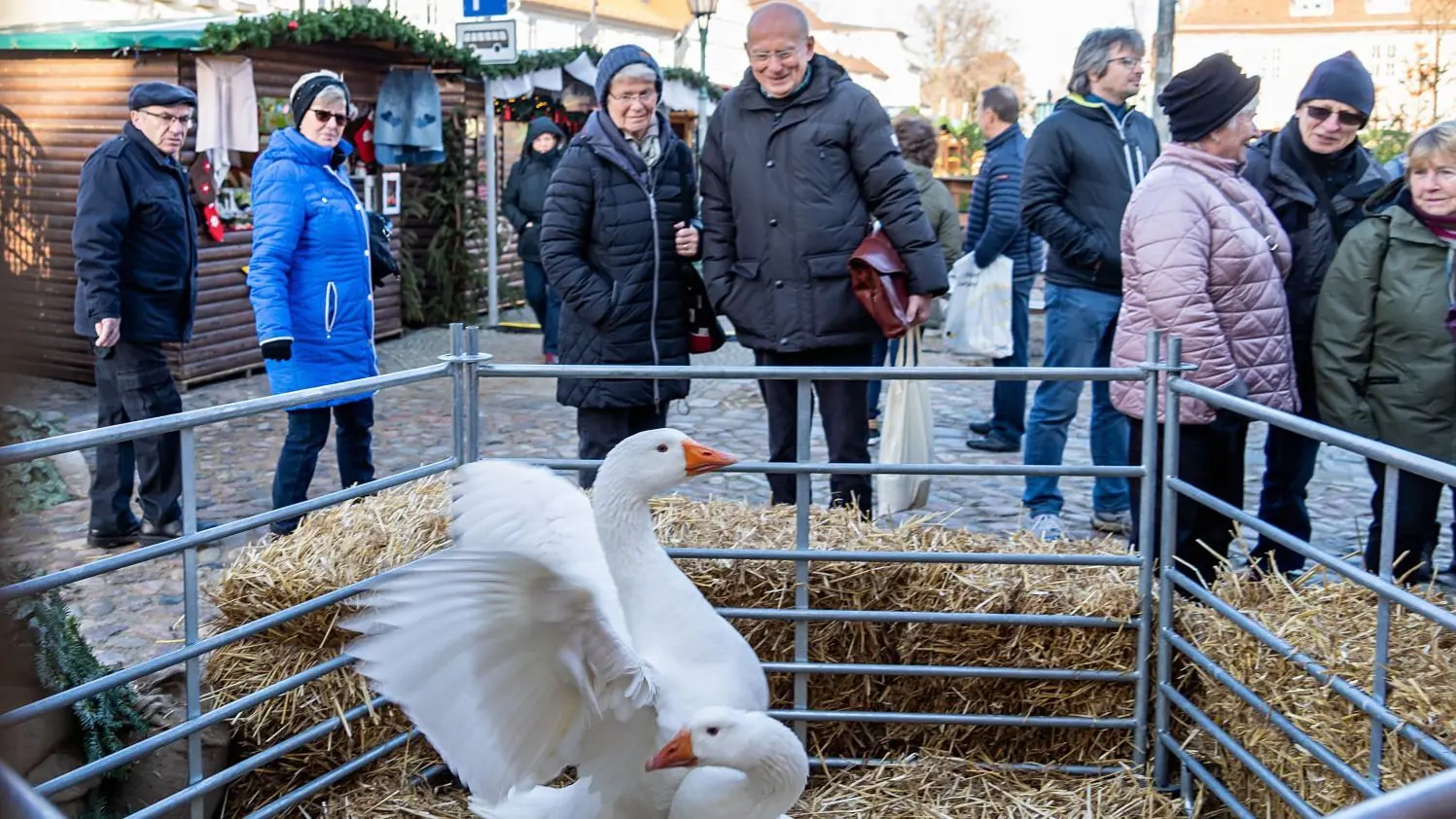Gänse gehören zum Gänsemarkt in Angermünde, wie Glühwein und die Weihnachtstanne. Doch 2022 gibt es unerwartete Probleme.