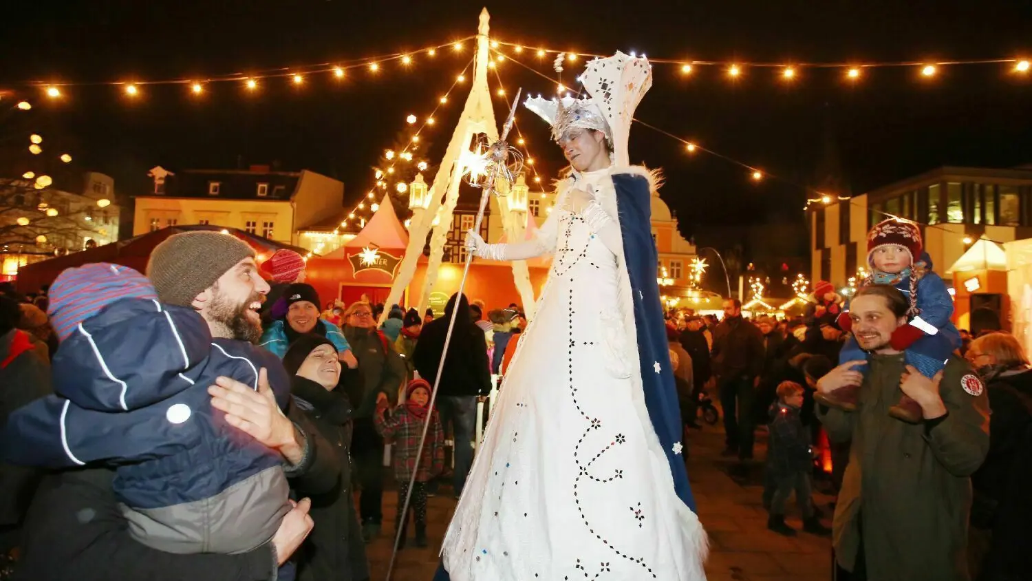 Tradition in Eberswalde: Die Schneekönigin ist dabei, wenn der Weihnachtsmarkt eröffnet wird. Das Foto stammt von 2016. Auch bei der Neuauflage wird ihr Gastspiel zu erleben sein.