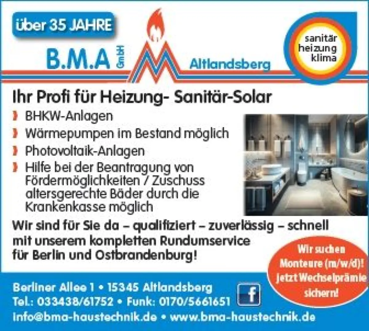 7. Oktober, 14.30 Uhr: Vorstandssitzung, 16 Uhr: Innungsversammlung, TGA Heinemann in Strausberg