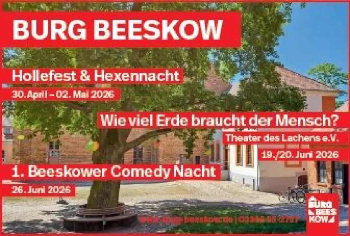 Zwischen Märchen und Mythos, Feuer und Frühlingszauber lädt die Burg Beeskow vom 30. April bis 2. Mai 2026 zum stimmungsvollen „Hollefest & Hexennacht“ ein. Rund um die sagenumwobene Gestalt der Frau Holle erwacht der Burghof nach der Winterpause zu neuem Leben – mit Theater, Musik, Tanz und einem Hauch geheimnisvoller Magie.